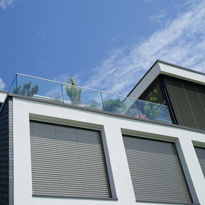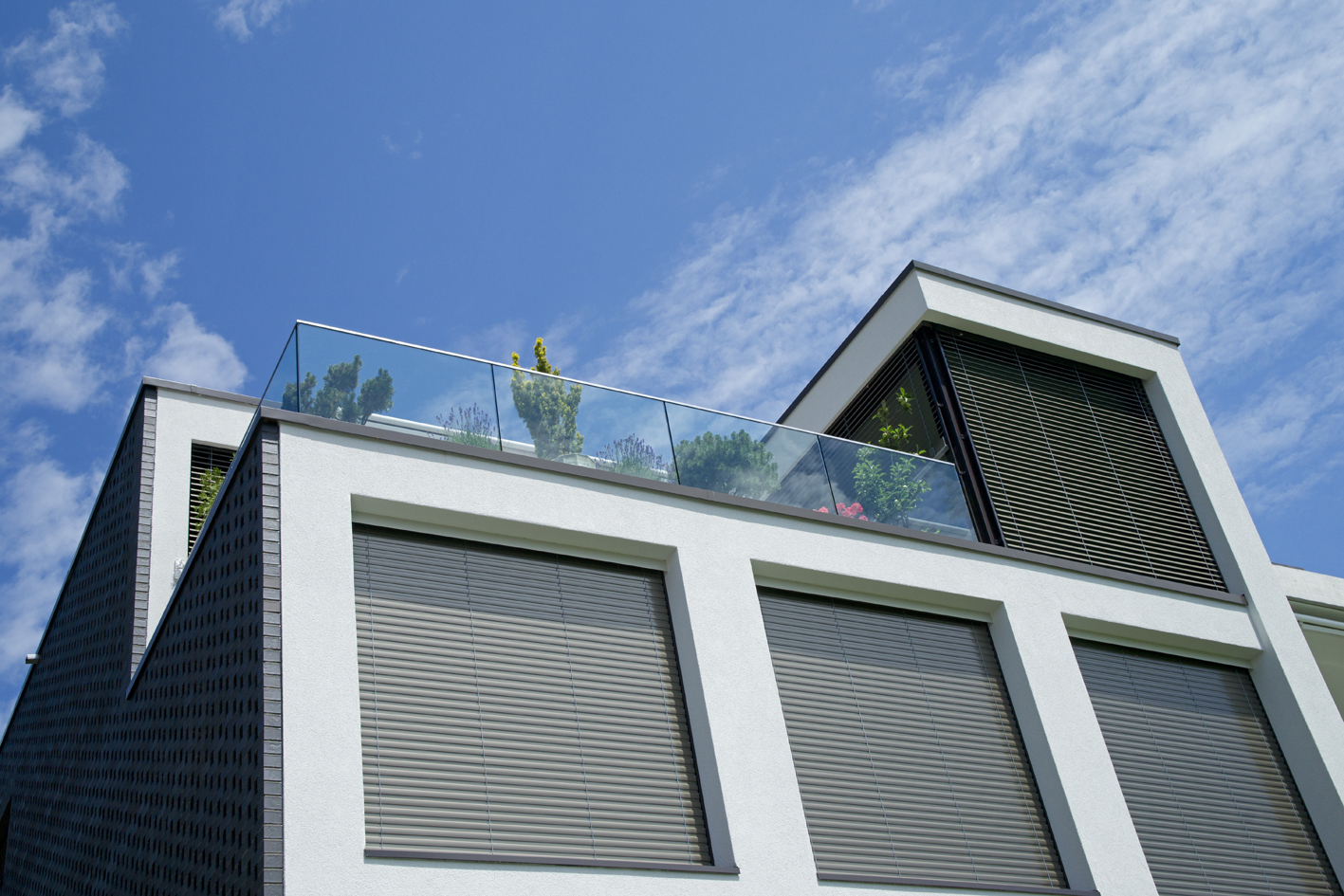 Neben konventionellen Montagearten bieten wir auch eine Dachtrassenlösung ohne Verletzung an der Dachhaut an. Mit Ganzglaskonstruktionen kann vollständige Transparenz trotz komplett geschlossener Fronten gewährleistet werden. Somit ist Ihr Geländer nicht nur Absturzsicherung, sondern zugleich Schallschutz.