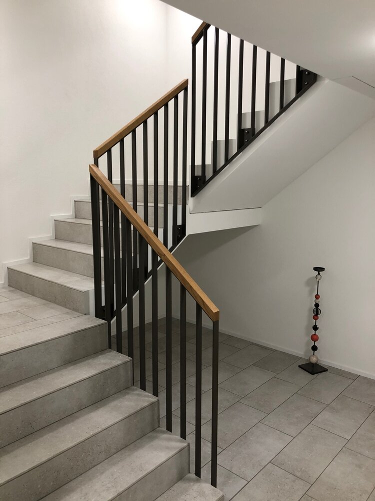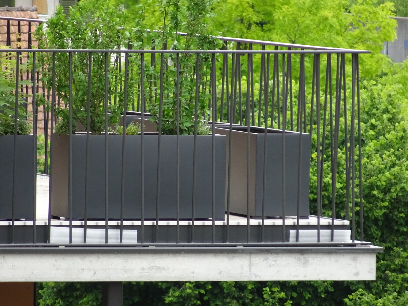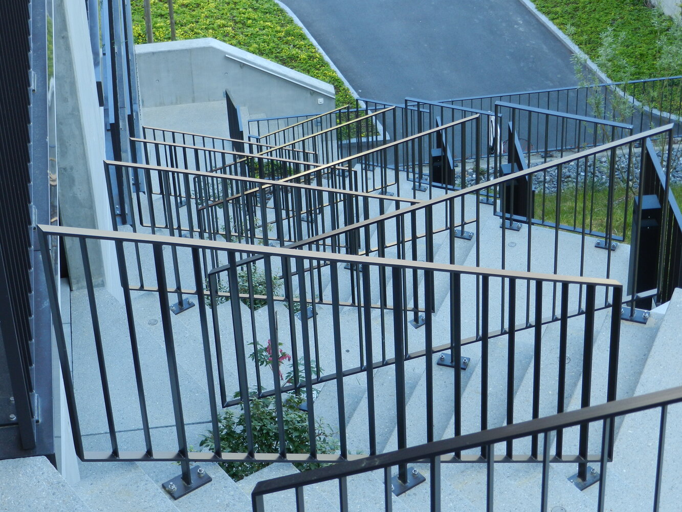 Schräge Anordnung der Staketen aus Rundeisen, Wiedenhub Basel