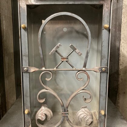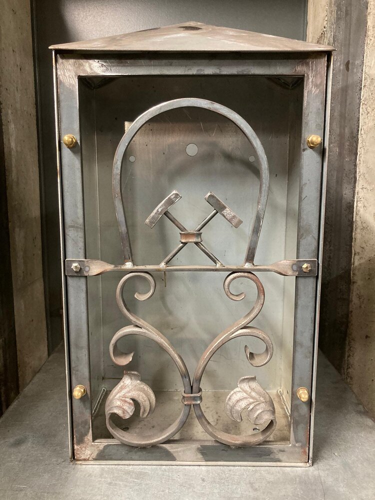 St. Barbara NischenWir fertigen St. Barbara Nischen aus Stahl, zum Schutz der Patronin der Berg- und Bauleute. Hergestellt wird die Nische aus Stahl und kann in allen RAL-Farben beschichtet werden. Die Abmessungen betragen; b=330mm, t=200mm und h=630mm.Nische unbehandeltNische pulverbeschichtet