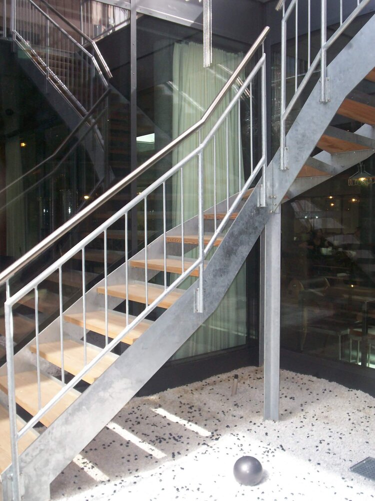 Grundsätzlich stellen wir Treppenwangen aus Breitflachstahl oder gelasertem Stahlblech her. Bei Kundenwunsch können auch andere Querschnittsformen wie U-Profil oder Reckteckrohre verwendet werden. Die Materialisierung der Tritte wird dem gewünschten Einsatzbereich der Treppe angepasst. Möglich sind Tritte aus Holz, Stein, Glas, Blech oder rein funktional Gitterrosttritte.
