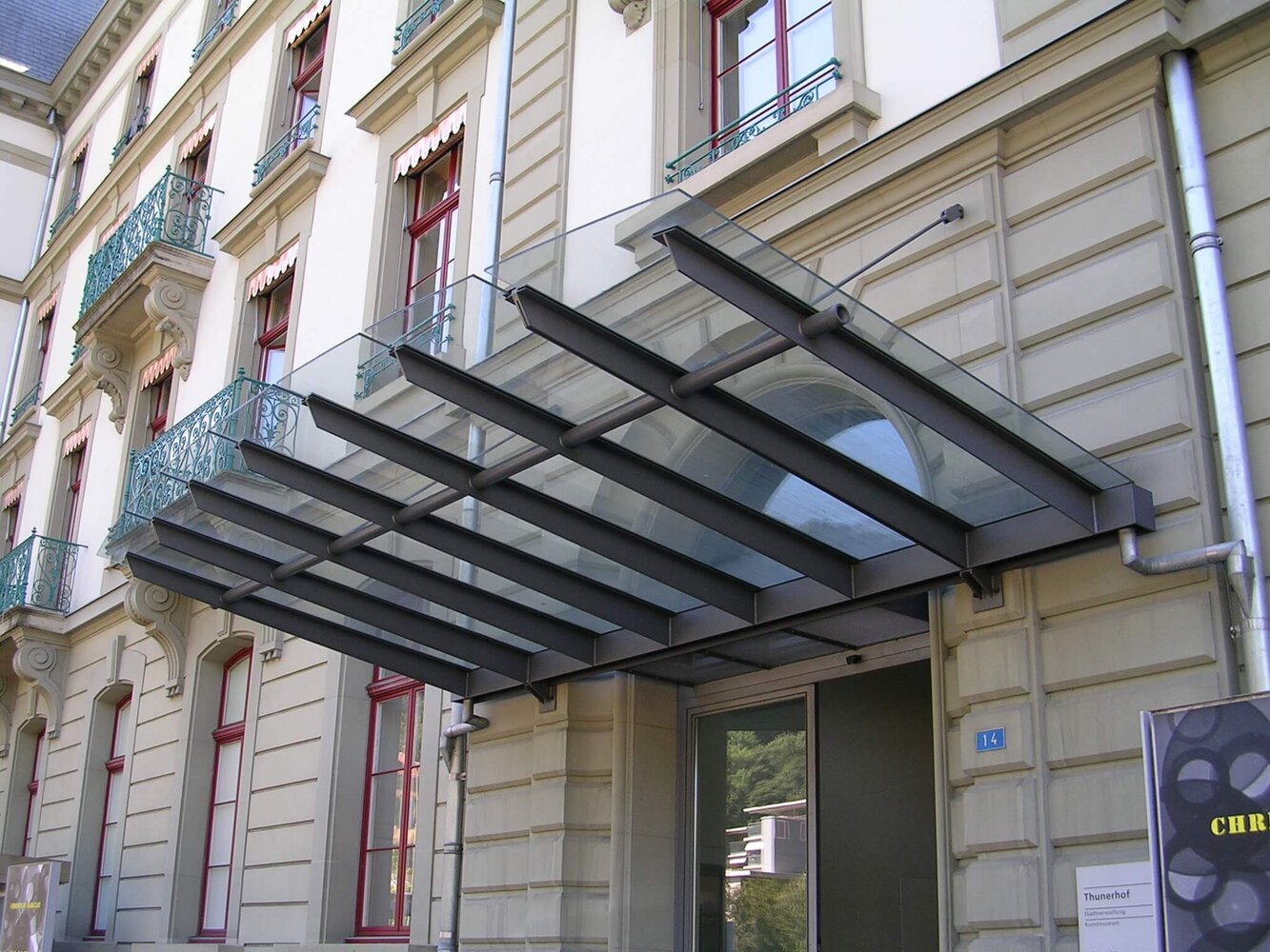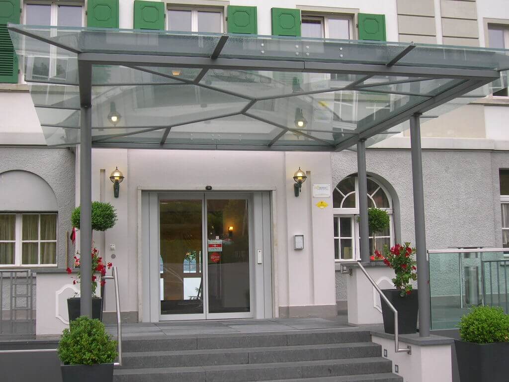 Vordächer dienen nicht nur zum Schutz vor Regen, Schnee oder Sonne, sondern können auch als architektonischer Blickfang eingesetzt werden. Schlichte, filigrane Konstruktionen wirken unauffällig und doch edel. Meist kommt hierbei Glas, Stahl oder Kombinationen aus beiden Werkstoffen zum Einsatz. Je nach statischen Gegebenheiten werden die Konstruktionen gestützt, aufgehängt oder auskragend ausgeführt.